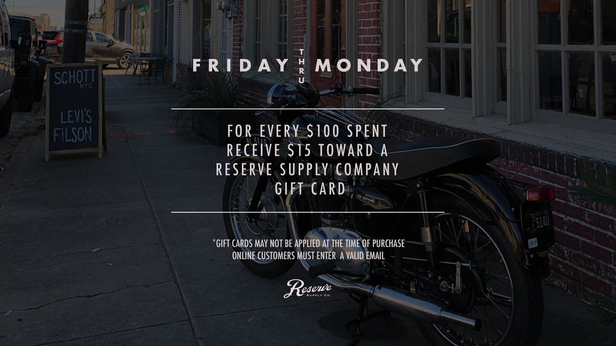 is a men's clothing store located in Houston, Texas, locally owned and operated since 2011. We offer a blend of classic men's apparel, shoes, and accessories from well-established brands that have stood the test of time, as well as new start-up brands that are committed to preserving classic design, craftsmanship, and construction. Reserve Supply Company draws inspiration from various sources, including music, art, skateboarding, workwear, and early motorcycle culture.
